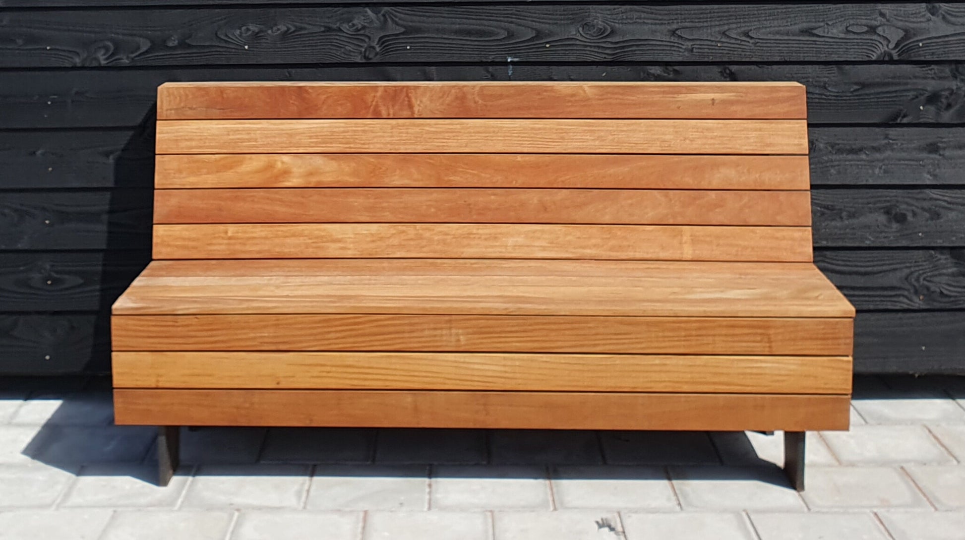Deze ambachtelijk gemaakte tuinbank bestaat uit hardhout met FSC keurmerk en een betonplex onderstel. Dit maakt de tuinbank onverwoestbaar. Door het gewicht en ontwerp zijn ze tevens solide en sterk.